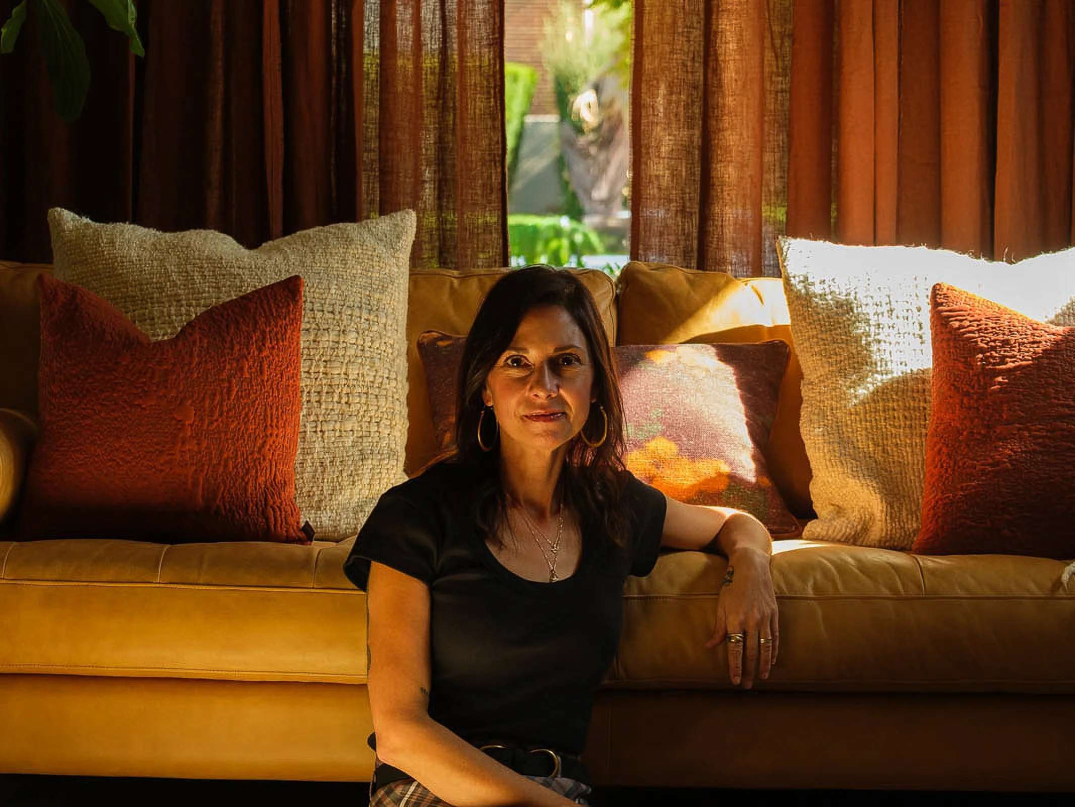 A linen drape softens a window